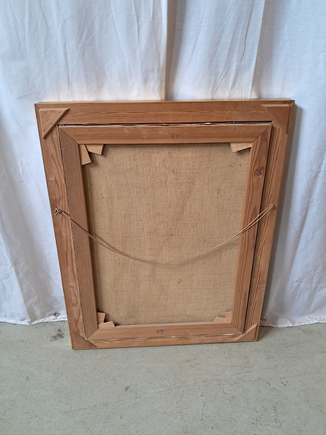 Maleri af Nikolaj kirke i guldmalet ramme, fra 1950erne.