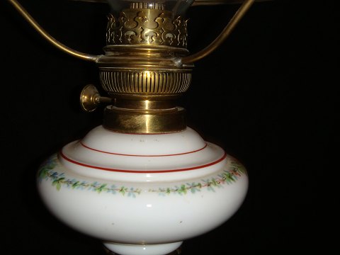 Petroleumslampei opalineglas med bemaling og Broncemonteringer