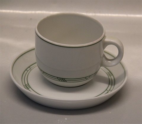 102 Kaffekop og underkop 1,25 dl (305) Olympia Bing & Grøndahl B&G Olympia: Kraftigt hvidt porcelæn med mønster med grønne streger, som Delfi, form 43 I fin og hel stand Bing & Groendahl