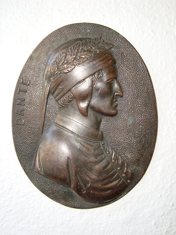 Oval patineret bronzeplakette med Dante.