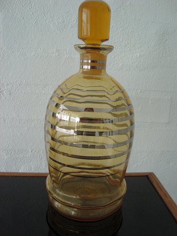 Art deco likørsæt i optisk ravfarvet glas.