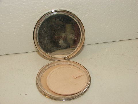 Sølv pudderdåse med indgraveret motiv af Danmark og teksten 'Ella Danmark'.