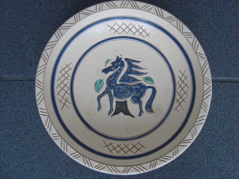 Dekoreret med hest i kartouche, samt friser/bort på fane.