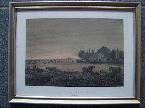 Farvelitografi af A. Nay efter Th. Brendstups maleri "Parti fra Marsken"