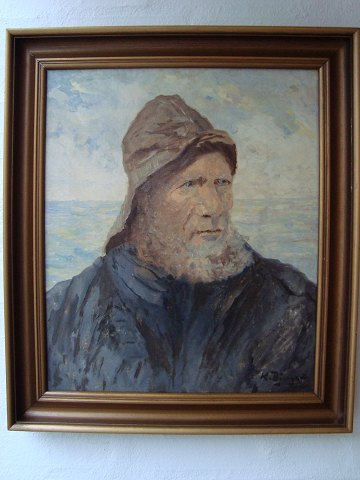 Maleri - Fiskerportræt af Kræn Bjergen, Skagen.