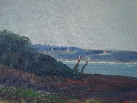 "Vej gennem sensommer landskab ned mod kysten" (Mols??)