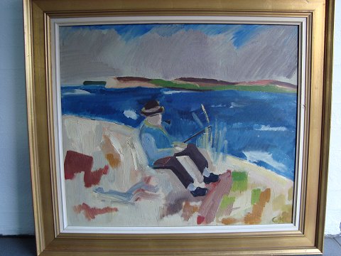 Maleri - G. Karmisholt - Jæger ved vandkant.