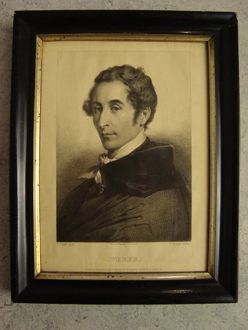 Indrammet i smuk original sort lakramme med guld/sølv kant (27x21).