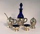 Danish work. Silver (830). 2 salt jars with spoons, pepper shaker, mustard ...
