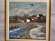 Maleri af William Hansen - Vinterpart fra Vejlby Kirke ved Strib 1972.