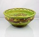Michael Andersen bordfad med reliefdekoration og lysolivenfarvet glasur.