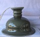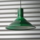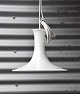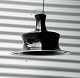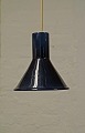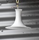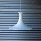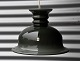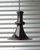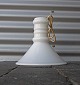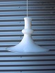 Loftslampe med teaktop, lakeret metal og opalhvid glas