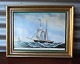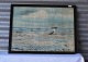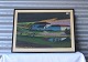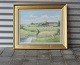 Olie på lærred. Maleri med motiv af gård og sø. Signeret ...