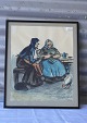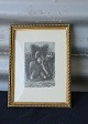 Kobberstik med motiv af mand og dame med flot gylden ramme.