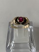 Damering i 14 karat guld med stor rød sten, stemplet 585, størrelse 56