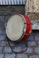 Decorative old drum with brass edge. H: 14 cm. dia. : 41 cm.