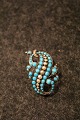 Antique silver brooch with turquoises - (1880) Measures: 4x2,5cm.