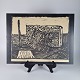 Træsnit af Ebba Holm - Havnemotiv.