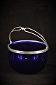 Old Candy bowl in blue glass with silver border and handle. Stamped 830S.