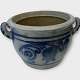 Stor "Lillerød" uglekande i glaseret lertøj i fin mørkeblå glasur.