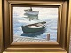 Maleri af Gunner Bundgaard - Havneparti med både.