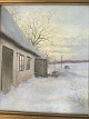 Maleri af William Henriksen - Vinterparti ved stråtækt gård