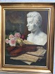 Maleri af Alice Linge - Opstilling på bord med violin, partitur og buste.