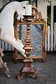 Antik , fransk gulv lysestage i udskåret træ med rest