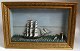 Halvskib i montre, bemalet træ, 19. årh. Danmark.