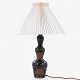 Bordlampe i stentøj med mønster i brunlig glasur og ny ...
