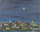 Bente Merrild 1951. "Moskva" Stort flot ekspressivt oliemaleri i kraftig ...