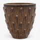 Lågkrukke i riflet stentøj og sølv med lys glasur.