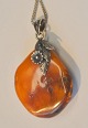 Stort poleret ravsmykke med sølv vedhæng, 20. årh. Danmark.