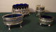 English salt/pepper set, 19th century. Silver plated with blue glass