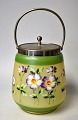 Bisquit spand, lys grønt glas med emaljebemalinger, juge . . .