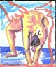 Degett, Karen (1954 - 2011) Danmark: Badeliv ved stranden.