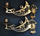 Par danske jugende trearmede lysestager i messing, ca. 1900.