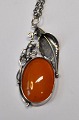 Sølv vedhæng med poleret rav, 20. årh. Danmark.