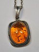 Dansk jugend vedhæng i sølv med rav, 20. årh.
