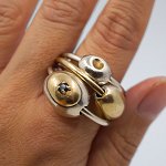 Anette Kræn; A Danish design ring, silver and gold with a dimond