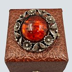 Georg Jensen; Silver brooch with granates and amethyst, no. 159
