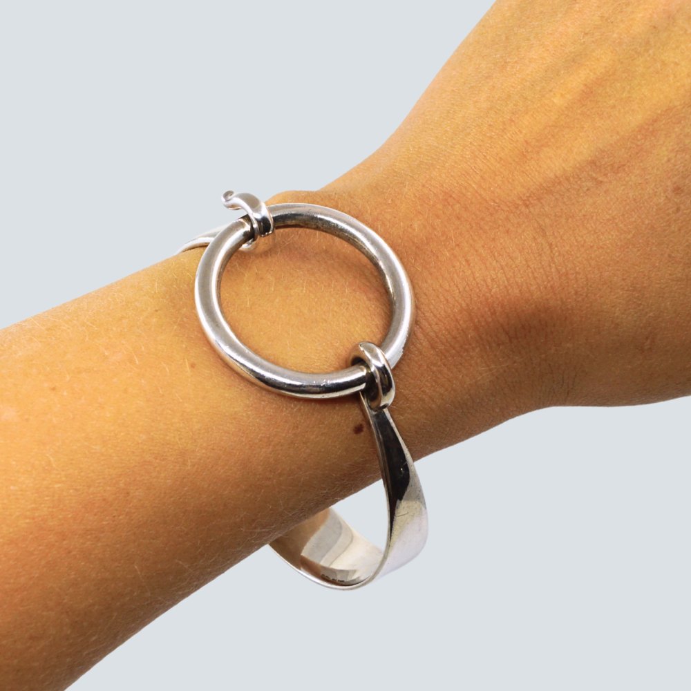 Hans Hansen; A brangle made of sterling silver. Front shaped like a cirkel, and can be opened.