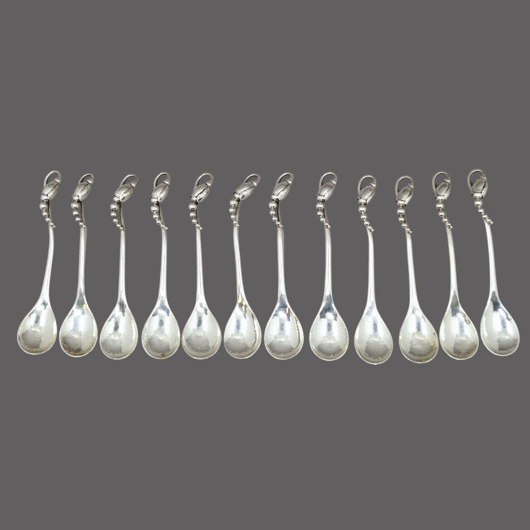 Georg Jensen; Set of 12 Magnolia/Blossom coffee spoons made of