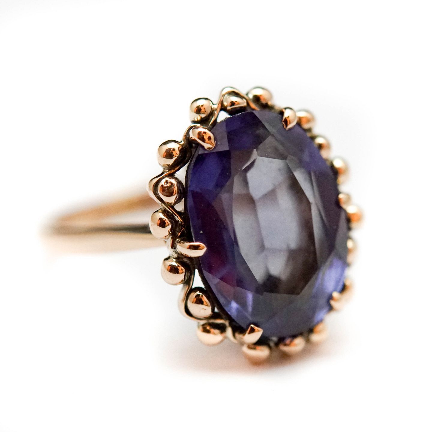 Smykke. Ring af 14 karat guld med ametyst, indfattet i perlekrans af guld