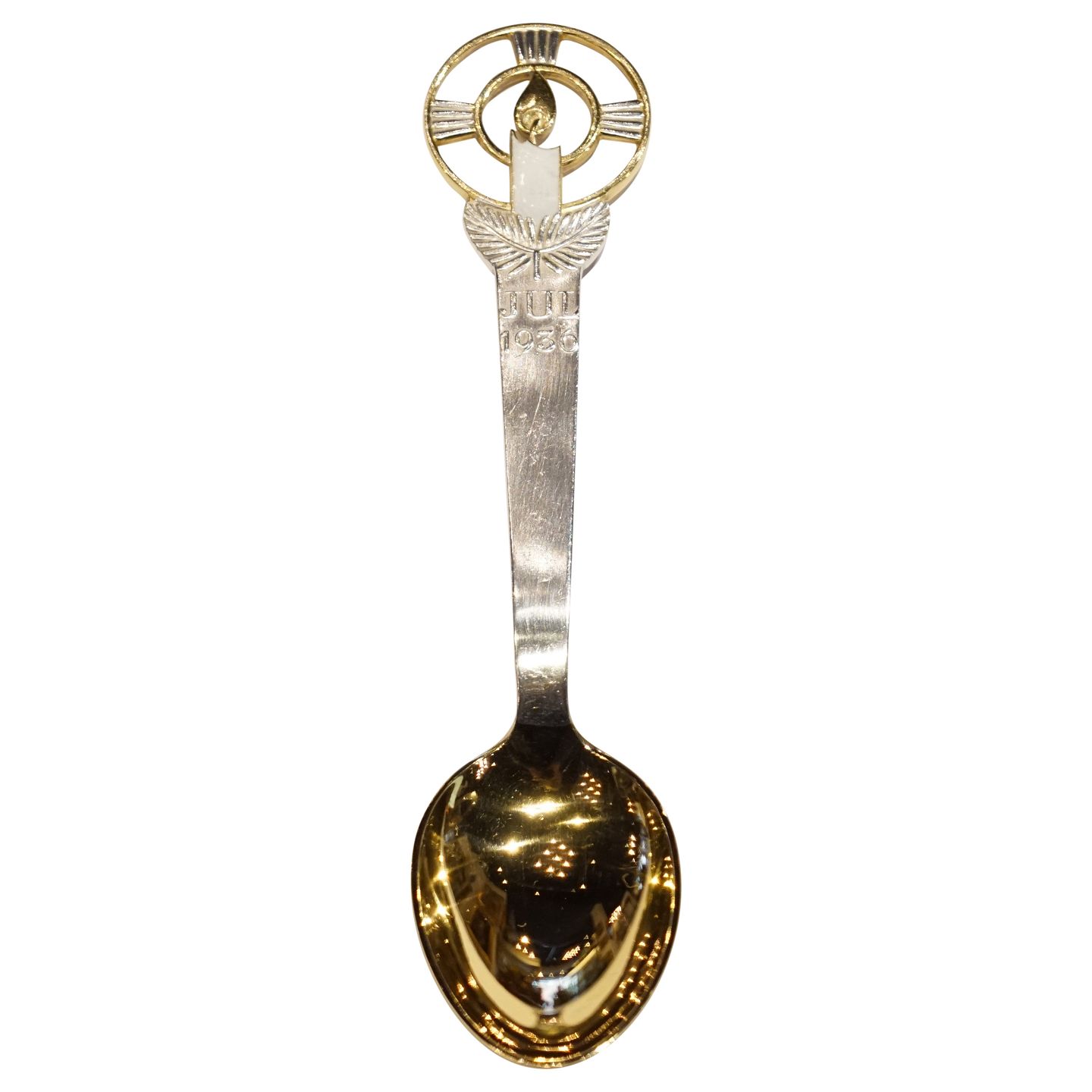 Julseske af delvist forgyldt sterling sølv samt emalje. L. 15,8 cm.