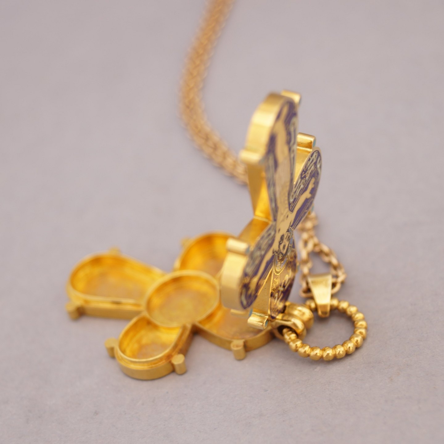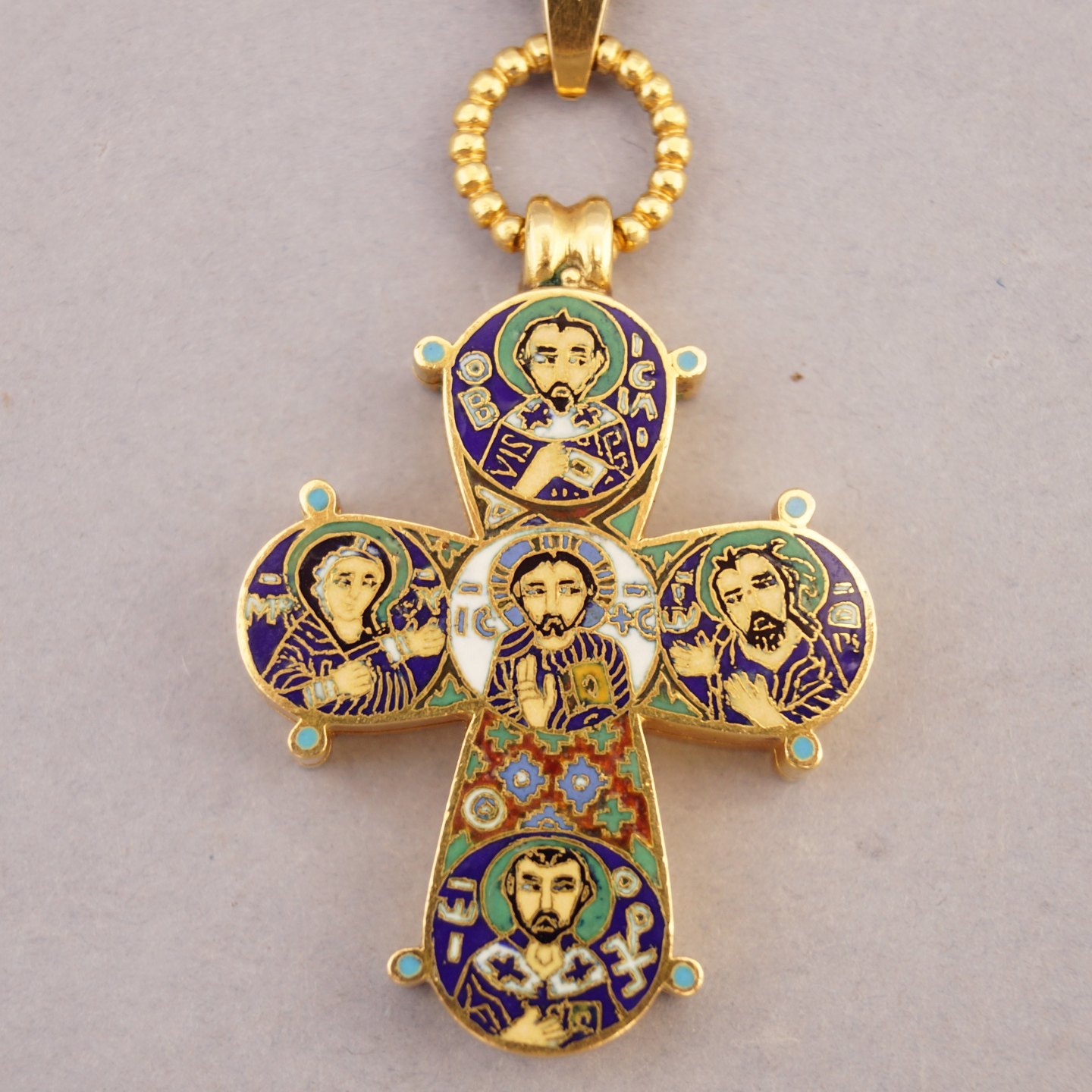 Dagmarkors i 14k guld med emalje og som medaljon der kan åbnes
