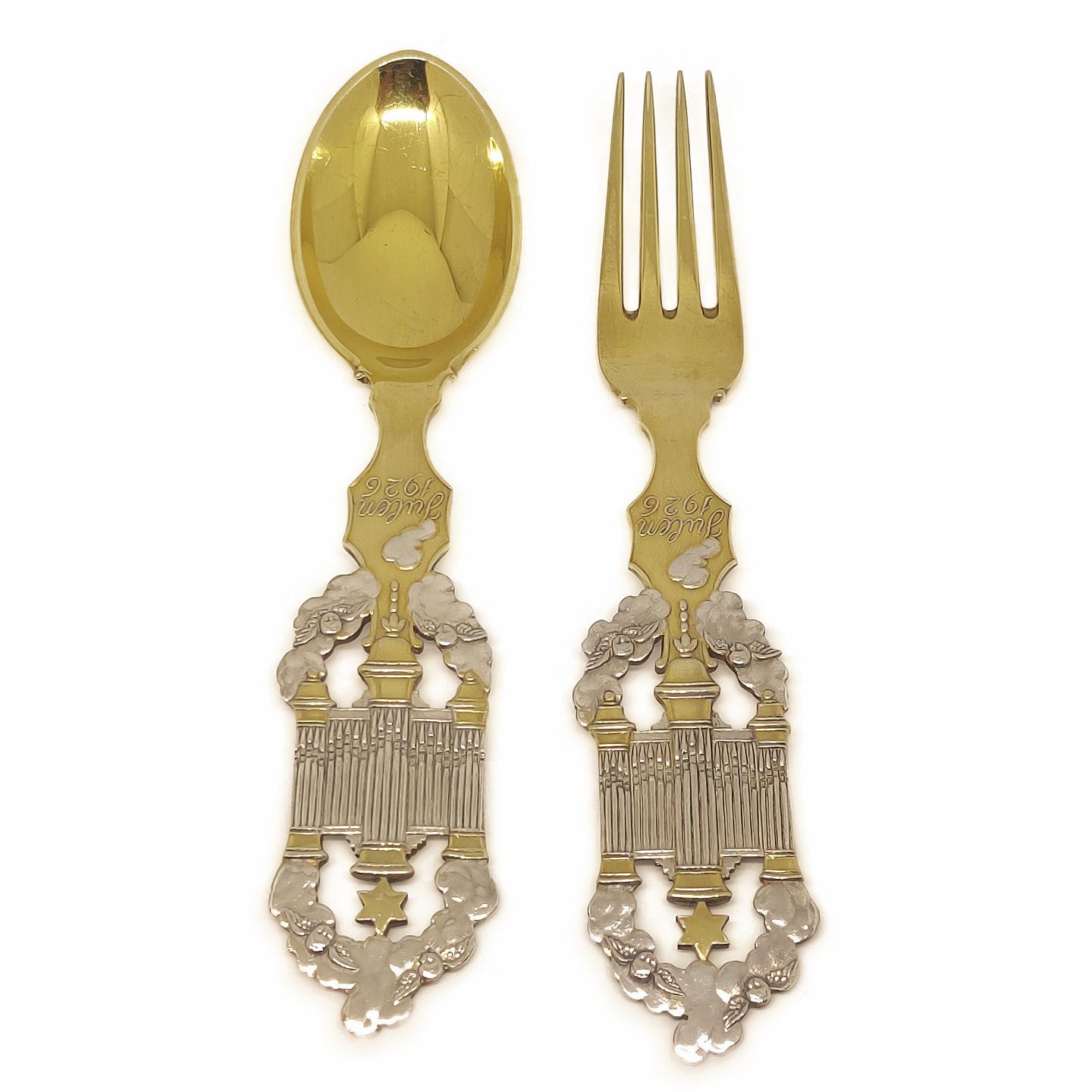 Juleske og julegaffel af delvist forgyldt sterling sølv prydet.