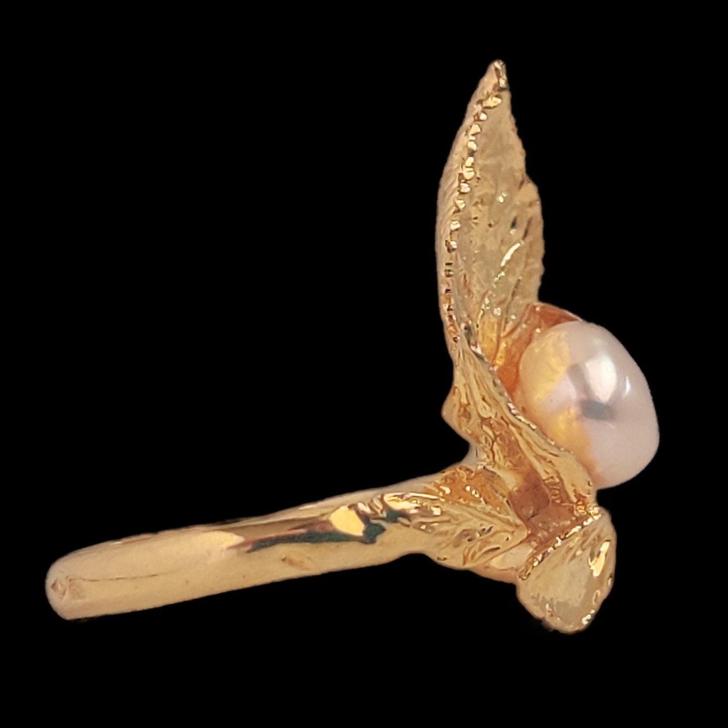 Jean Larsen; A ring of 18k gold, leaves set with a pearl.