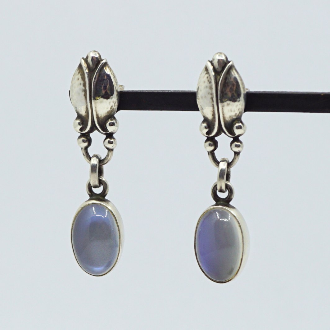 Georg Jensen; Pair of Moonlight Blossom earrings in sterling silver with moonstones.