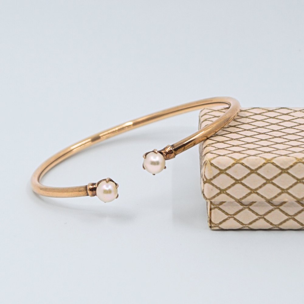 Bernhard Hertz; Armring af 8 kt. guld. Prydet med to perler.
